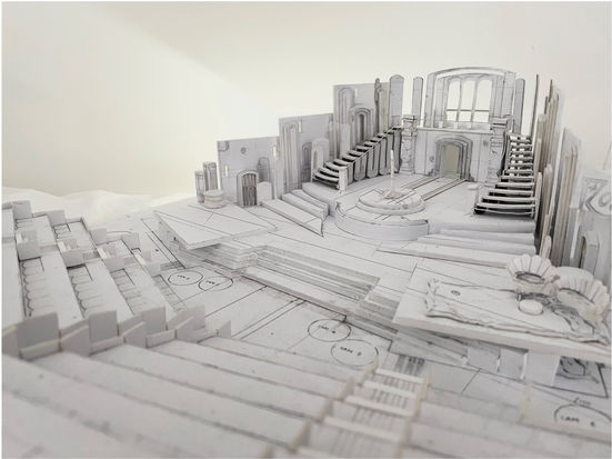 Designed a production scheme for An Audience with…, inspired by Rosé from RuPaul's Drag Race. The set featured three performance spaces, an interview area, and intimate audience seating, tailored to Rosé's style and branding. It included technical considerations for cameras, performer entrances, and guest access.