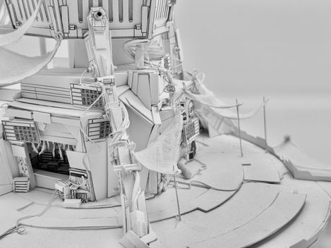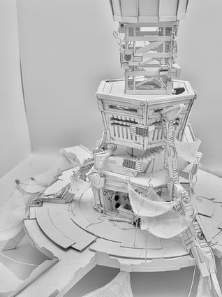 Adapted a scene from Confusion of Princes into a set for a university project. Reimagined as a scorching desert world, the spaceship junkyard became a community of vessel-dwelling survivors trading salvaged trash to avoid execution by the "death master." The design featured elevated, robotic-legged vessels housing humans and Shubians